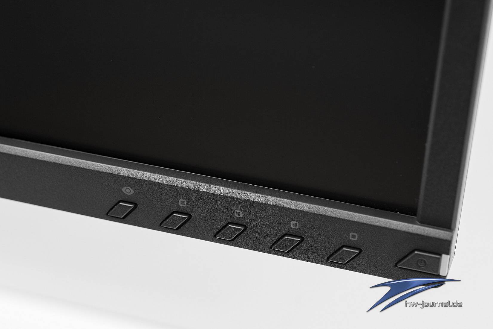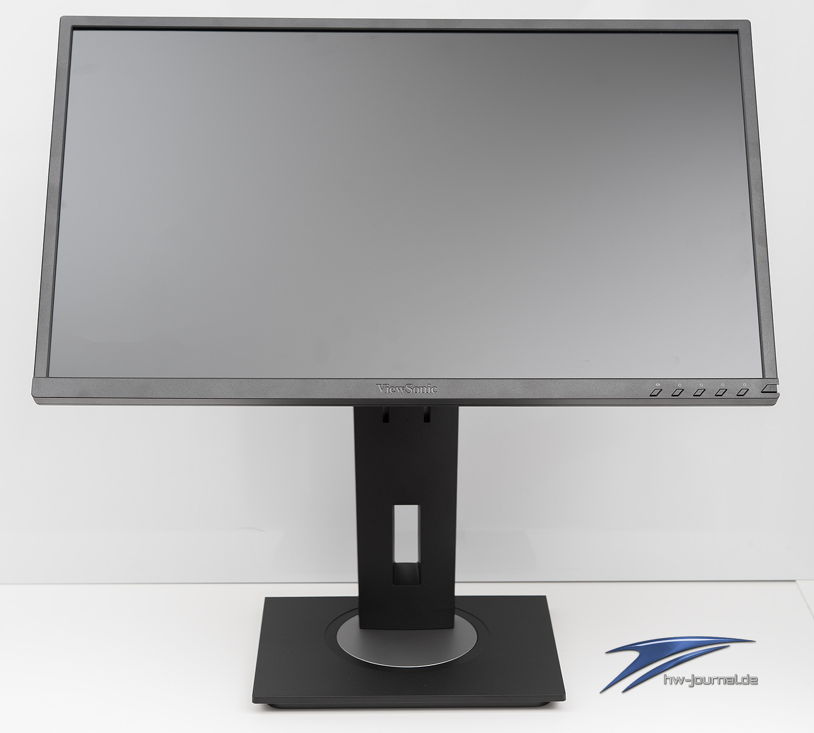 Vom optischen Gesichtspunkt wurde der VG2448 deutlich eleganter und weniger bulliger gestaltet, als der von uns schon vorgestellte Viewsonic VG2433MH mit TN-Panel. Das Gehäuse ist aus einem schwarzmatten Kunststoff gefertigt und deutlich sparsamer eingesetzt, als wie beim VG2433MH. Das Display wird von einem ein Zentimeter breiten Rahmen eingefasst, welcher unten, aufgrund des vorhandenen Bedienpanels, auf knapp das doppelte anwächst. Das Logo ist sehr dezent im Kunststoff eingelassen und arrangiert sich optisch sehr gut mit den rechts sitzenden Steuerungstasten. Diese besteht aus fünf Tastern für die eigentliche Menüsteuerung und einen zusätzlichen Power-Schalter, der durch eine blaue LED seinen Ist-Zustand signalisiert.