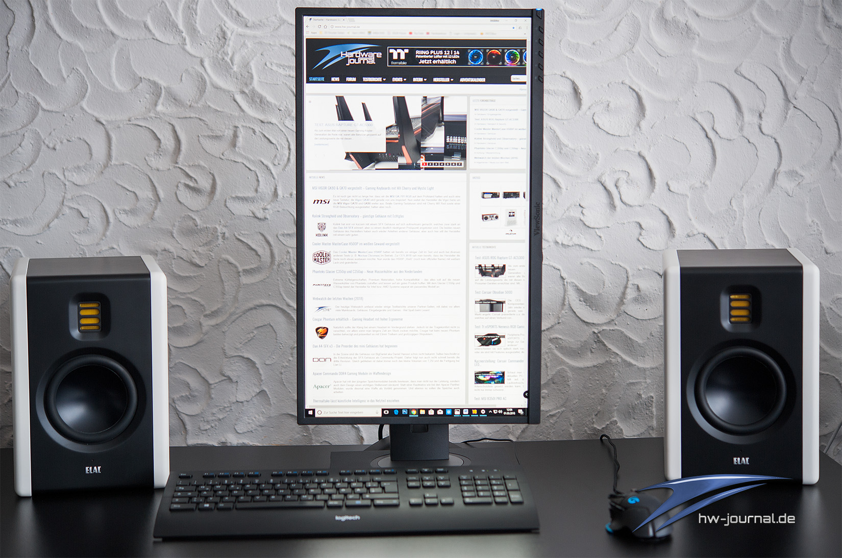 Anwender die ständig mit vielen Fenstern gleichzeitig hantieren, sollten aber eher auf ein höherauflösendes bzw. größeres Display zurückgreifen oder vielleicht über zwei dieser Modelle nachdenken. Denn der recht schmale Rahmen eignet sich wunderbar für einen Multi-Monitor-Setup. Die Möglichkeit den Monitor auch im Hochformat verwenden zu können, empfanden wir im Alltag als sehr praktikabel, für das Verfassen von längeren Texten oder zum recherchieren auf Websiten kann das Hochformat durchaus hilfreich sein.