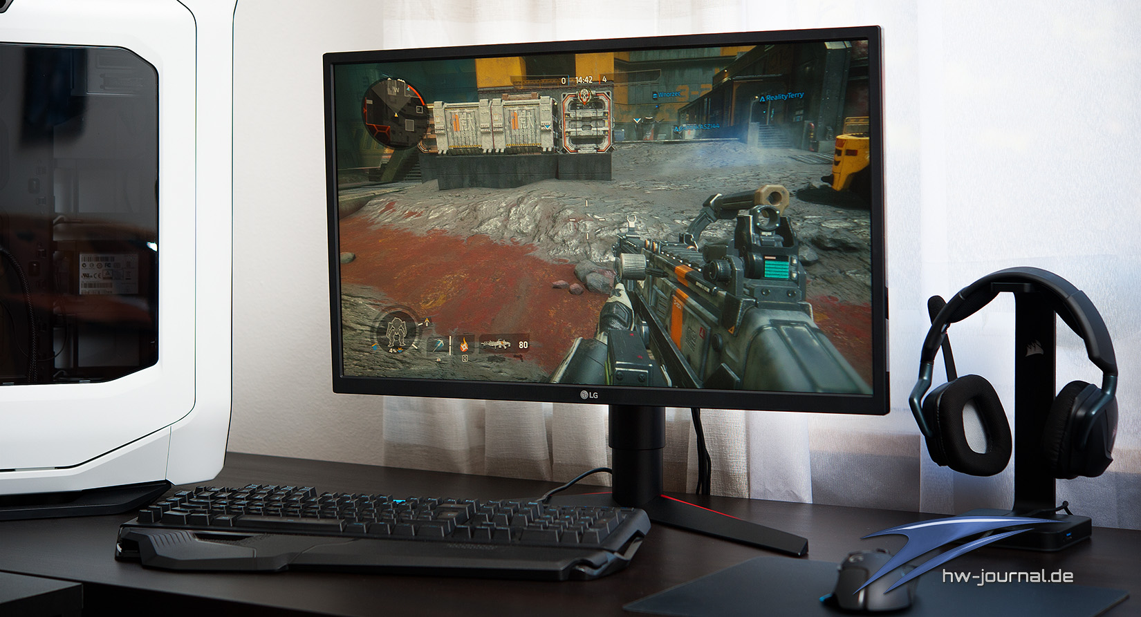 Um dem LG Monitor auch in seiner Komfortzone abzuholen, daddelten wir ein paar Runden CS:GO und Titanfall 2 über den Bildschirm. Natürlich mit aktivierten FreeSync, welches uns das Spieleerlebnis nochmal deutlich schmackhafter machte. Der Monitor mit seiner maximalen Bildwiederholrate von 240Hz schafft es dank der geringen Reaktionszeit des Panels ein wunderbar homogenes Bild zu erzeugen, welches sehr „smooth“ über den Bildschirm flimmerte ;). Für einen 60 Hertz Nutzer ohne Erfahrung in aktuellen Sync-Verfahren, sei es von AMD oder Nvidia, bietet FreeSync ein signifikanten und deutlich erkennbaren Unterschied im Spieleerlebnis. Gerade in hektischen Spielen wie Ego-Shootern bietet das einen enormen Mehrwert, da hier das Spielgeschehen einfach als „runder“ empfunden wird. Aber auch im Desktop-Betrieb, Surfen, zwischen Ordner Hin- und Herwechseln oder eben die reine Windows-Oberfläche profitieren davon. Die Bedienung des Computers wird als deutlich angenehmer empfunden.