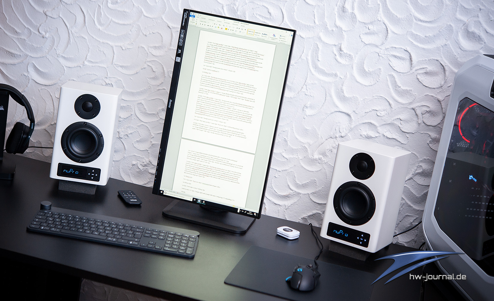 Liegt die persönliche Präferenz bei Multitasking und dem Hantieren mit vielen Fenstern gleichzeitig, sollte die Wahl auf ein höherauflösendes Display fallen oder über ein Multi-Mointor-Setup nachgedacht werden, der schmale Rahmen gibt das jedenfalls her. Die Möglichkeit den Monitor auch im Hochformat verwenden zu können, empfanden wir im Alltag als sehr praktikabel, für das Verfassen von längeren Texten oder zum recherchieren auf Websiten ist die Pivot-Funktion immer hilfreich.