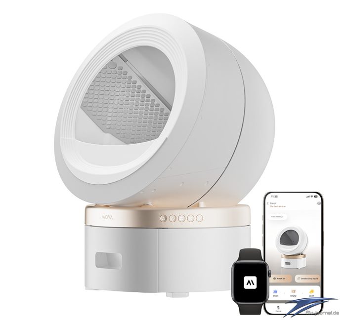 Dieses soll 30 Tage lang reichen und bildet einen Nanofilm und biologische Enzyme, um Gerüche direkt an der Quelle aufzuspalten. Ein Netzteil inklusive Kabel ist ebenfalls enthalten. Die Steuerung erfolgt über die MOVAhome-App, die kostenlos für Android und iOS verfügbar ist, oder über die 5 Tasten direkt am Gerät. Optional bietet der Hersteller Zubehörpakete mit Ersatzfiltern und Hygienebeuteln an, um die Wartung langfristig zu vereinfachen. Auch verschiedene Siebteller für andere Streuarten sollen demnächst bei MOVA erhältlich sein.