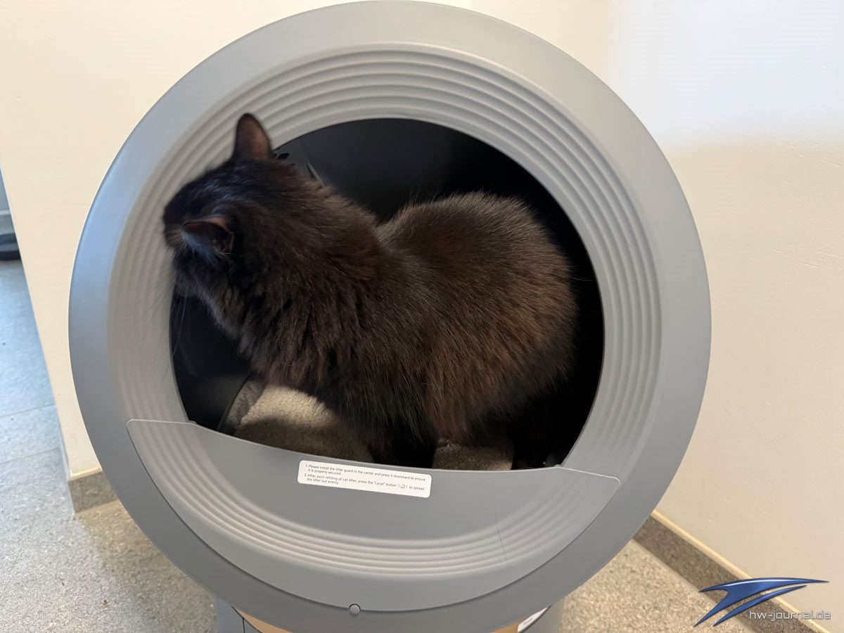Spannend für alle Fellnasen ist der Selbstreinigungsmodus. Teils aufmerksam, teils kritisch wird die Rotation der Kabine genau beobachtet, immer mit einem Sicherheitsabstand. Als Halter ist das Wiegen eine sehr praktische Nebenfunktion, da eine unserer Katzen sehr, sehr ungern auf der Waage ist. So hat man immer (das teils zu hohe) Gewicht im Blick. Damit braucht es deutlich weniger Zeit durch den hohen Automatisierungsgrad des Gerätes.