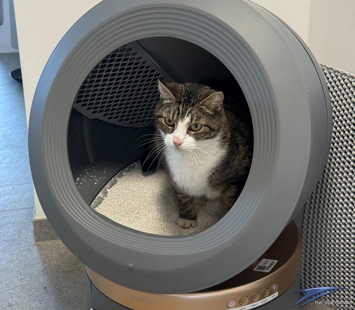 Wie bereits eingangs erwähnt, haben wir sechs Tage lang den MOVA MeowgicPod LR10 Prime im Praxistest gehabt. MOVA gibt selbst den Hinweis, dass man altes Streu einfüllen soll, und parallel die alte Katzentoilette in Betrieb halten, um den Umstieg zu erleichtern. Das ist natürlich ein Standardprocedere, das alle Katzenhalter schon lange kennen, aber besser den Hinweis geben, als einen teuren Staubfänger in der Ecke stehen zu haben.