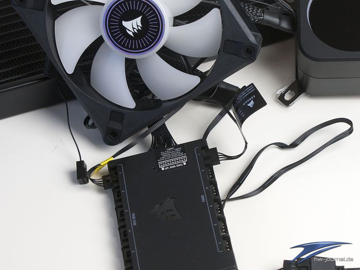 Weniger Verkabelung hat man aber mit der Wasserkühlung dennoch nicht. Denn jeder Lüfter will jeweils mit zwei Steckern angebunden werden. Was man hingegen positiv bewerten kann, dass man ebenfalls drei weitere Lüfter des Herstellers anschließen kann. Diese müssen bei dieser Generation des Controllers auch nicht identisch zu den bereits vorhandenen sein bzw. können sozusagen alle verschieden sein. Dies ist auch beim Corsair iCUE Commander XT der Fall.